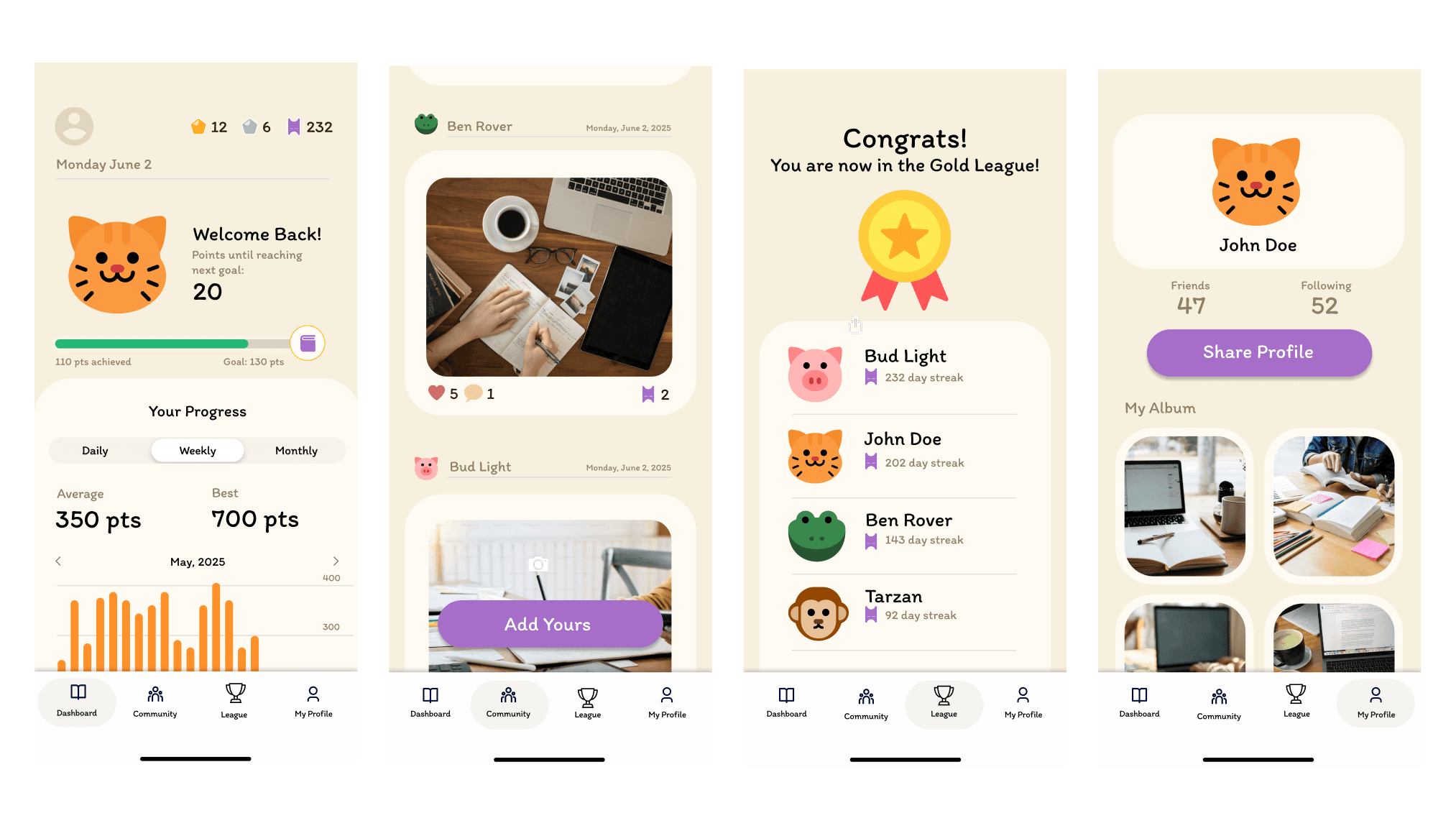 SnapHabit is a habit tracking mobile app designed to help users build consistency through simple check-ins and visual progress tracking. The app focuses on reducing friction in daily habit tracking by using an intuitive interface, friendly visuals, and quick interactions that encourage long term habit formation without feeling overwhelming.