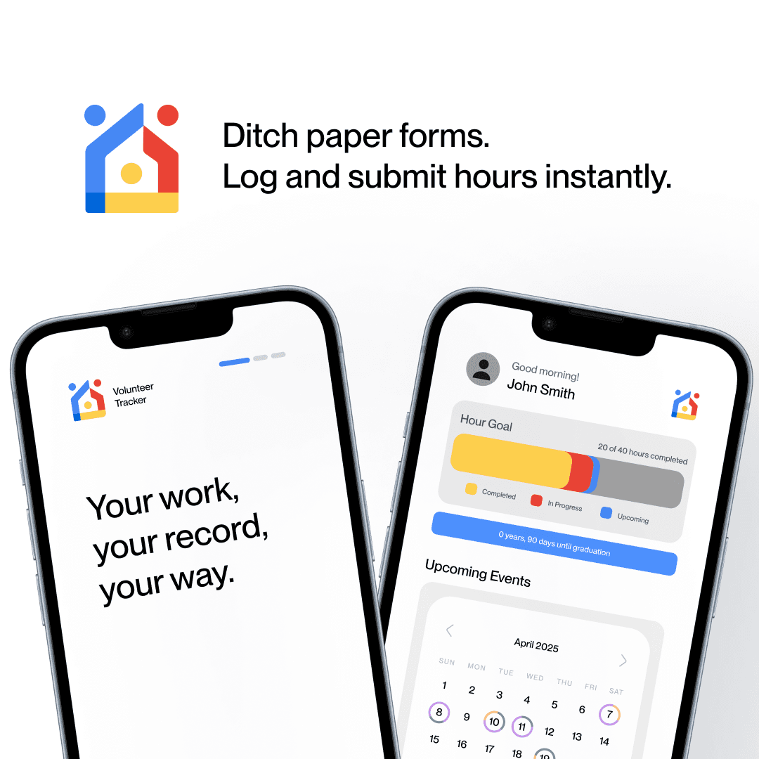 Volunteer Track is a mobile app concept designed to modernize how high school students track community service hours. Many schools still rely on paper forms, which are easily lost, damaged, or forgotten. This creates frustration for students and extra administrative work for educators. VolunteerTrack replaces paper-based tracking with a simple and reliable digital solution.